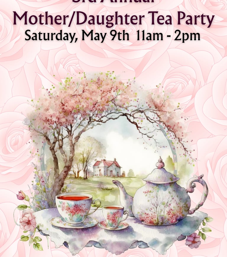Celebrate Mother's Day at our place! Wear your fancy hat and enjoy an afternoon in our party tent. Guests will enjoy delicious tea party treats, fun games and photo ops. We are so excited to partnering with The Candlewick Cove so that each mother/daughter couple can make their very own soy candle together! (additional candle kits can be purchased the day of event).